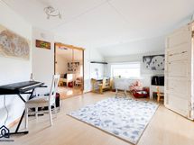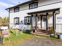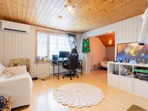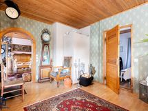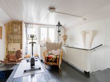 Yläkerrassa: 3 huonetta, 2 alkovia, keittö ja 2 wc.