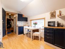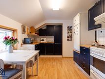 - Keittiön varusteet: Jääkaappi, erillinen pakastin, astianpesukone, uuni, liesi, liesituuletin ja puuhella