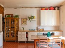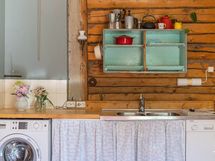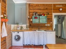 - Kaapistot, puutasot ja tiskipöytä. Astianpesukone, varaus pyykinpesukoneelle, jääkaappi, pakastin, erillisuuni, kaasuliesitaso ja liesituuletin (aktiivihiili). Mattolattia, seinät hirsi/maalattu/tapetoitu.