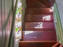 - Kuvaus: Asuinrakennuksen ala-aulassa kaapistot. Piharakennuksen varastotilat, vaja ja asuinrakennuksen vinttitilat.