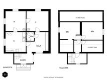- Asuinrakennuksen kerrosala n. 100 m2 ja huoneistoala n. 94 m2. Talousrakennuksen kerrosala n. 75 m2 (ulkomitat 5,75 x 13,08 m), josta