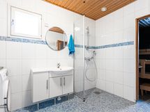 Suihkusekottaja ja suihku uusittu, lisätty suihkuseinä 2022. Silikonien vaihto 2025. Erillisten WC:n lukumäärä: 1. Erillisen WC:n varusteet: Peilikaappi, bidee-suihku ja lattiakaivo. Erillisen WC:n kuvaus: Wc-pytty, pesuallas uusittu 2021. Hana uusittu ja yläkaapin ovet 2022. Silikonien vaihto ja tapetointi uusittu 2025.