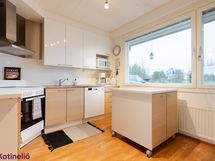 Liesi: keraaminen. Kylmäsäilytys: jääkaappi/pakastin, jää/viileäkaappi. Varustus: astianpesukone, liesituuletin / hormi. Keittiötä uudistettu 2021