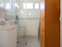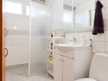 Pesutilojen kuvaus: Kaksi kylpyhuonetta joiden yhteydessä wc. Varustus: suihkuseinä, pesukoneliitäntä, wc-istuin, peilikaappi, peili.