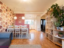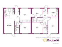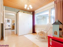 MH 1: tapetti kaikissa seinissä MH 2: tapetti kaikissa seinissä MH 3: seinät maali MH 4: Maali/tapetti MH 5: Maali/tapetti Kaikissa laminaattilattia. Hyvät säilytystilat: vaatehuone, kaapistoja ja kaksi ulkovarastoa.