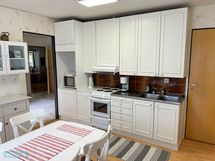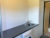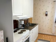 Liesi: sähköliesi. Työtasot: laminaatti. Kylmäsäilytys: jääkaappi. Varustus: kiinteät valaisimet, liesituuletin / hormi.