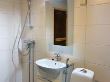 - Pesutilojen kuvaus: Pesuhuone menossa juuri remonttiin yhtiön toimesta, mahdollisuus valita oman maun mukaan pinnat ja varusteet. Varustus: suihkukaappi, pesukoneliitäntä, wc-istuin, suihku, peilikaappi, kiinteät valaisimet, kylpyhuonekaapisto. Varustus: peilikaappi, bidee-suihku.