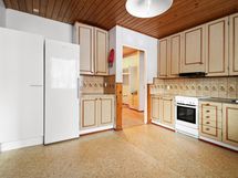 Jääviileäkaappi, lattialiesi, sähköliesi, induktioliesi, liesituuletin, astianpesukone, kaapistot, kiinteät valaisimet.