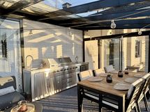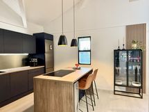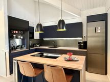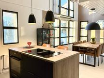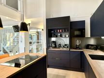 Liesi: induktio, erillisuuni. Kylmäsäilytys: jääkaappi/pakastin. Varustus: mikroaaltouuni, astianpesukone.