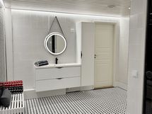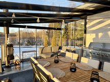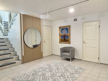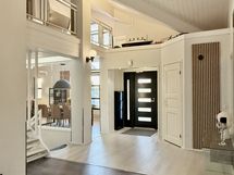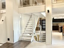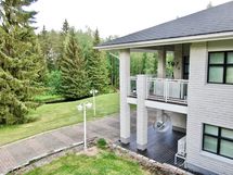 Suuri näyttävä talo talleineen, lasitettuine terasseineen ja asfalttipihoineen on vaikuttava näky pihaan ajettaessa, eikä vaikuttavuus ainakaan vähene sisällä, kun eteen avautuu turkoosin sinisen uima-altaan ympärille suunniteltu huikea moderni koti! Asuintiloiltaan 224m2 koti on rakennettu kahteen kerrokseen ja lisätilaa tarjoilee näyttävä parvi. Kokonaisuuden kruunaa tilava katettu terassi, joka tuo reilusti lisätilaa yhdessä olemiseen. Kodin värimaailma on juuri tätä päivää ja selkeälinjaiset materiaalivalinnat ja -ratkaisut tekevät kokonaisuudesta kauniin harmonisen.