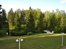 Rauhallinen ja väljä pihapiiri on kauniisti huoliteltu ja valaistu. Asfaltti- ja nurmialueet ja kukkapenkit on rajattu kiveyksin ja kasvillisuudessa on suosittu ikivihreää. Takapihalla avautuu upea maisema joelle, jonka yli menee hurmaava puusilta. Rohkeimmat pulahtavat raikkaaseen jokeen uimaan ennen porealtaaseen sukeltamista. Kahden auton lämmin talli sekä lisäksi toinen autotalli/varastotila ovat jokaisen puuhastelijan unelma!