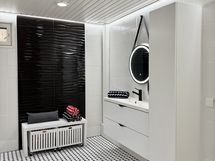 Pesutilojen kuvaus: Uima-allas 3,5m+8,5m. Ulkoporealla. Varustus: lattialämmitys, suihku.
