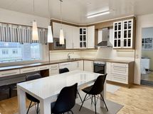 Liesi: keraaminen. Kylmäsäilytys: jääkaappi, pakastin. Varustus: liesituuletin, astianpesukone.