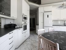 Keittiö: marmorilattiat, maalatut seinät. Olohuone: marmorilattiat, maalatut seinät. Makuuhuone 1: marmorilattiat, tapetti. Makuuhuone 2: muovimatto, tapetti. Makuuhuone 3: muovimatto, tapetti. Sauna: puupaneeli, laatta. Kylpyhuone: laattalattia, laatta seinissä. Eteinen: marmorilattiat, maalatut seinät. Wc: laatta, kaakelit. työhuone: muovimatto, maali/tapetti.