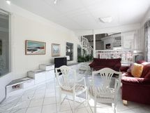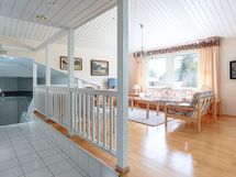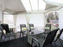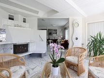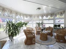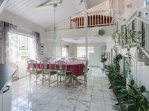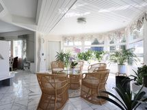 Talon upeat marmorilattiat loistavat jo eteistilassa, ja valoa tulvii ikkunoista joka huoneeseen. Tämä kaunis omakotitalo kätkee sisäänsä useamman makuuhuoneen, remontoidun keittiön, joka jatkuu ruokailutilana ja olohuonetilana aina viherhuoneeseen asti. Viherhuoneen vierestä onkin kulku uima-allasosastolle sekä spa-tiloihin. Yläkerrassa on lisää makuuhuoneita, aulatilaa sekä erillisen wc:n lisäksi myös lasitettu parveke.