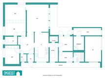 Asuinpinta-alaa on 118,5 m², ja pohjaratkaisu on käytännöllinen: keittiö ja olohuone yhdistyvät yhtenäiseksi, avaraksi kokonaisuudeksi, jossa on helppo viihtyä ja seurustella.