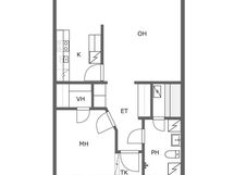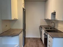 - Jääkaappipakastin, keraaminen liesi, liesikupu, kaapistot, kiinteät valaisimet.