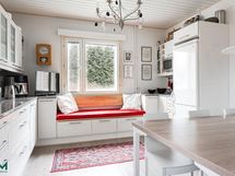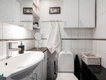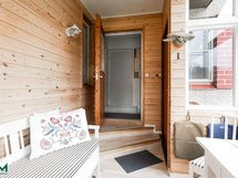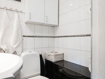- Puusauna, kylpyhuone, suihku, peilikaappi, allaskaappi, 2x seinäkaappi, sivukaappi, kiinteät valaisimet, pesukoneliitäntä khh puolella, vesikiertoinen lattialämmitys, erillinen wc