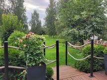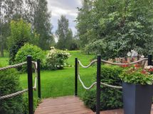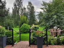 - piha- ja puistomäkymät. Terassi ja piha puistomaisin näkymin Suivanrannan suuntaan etelään