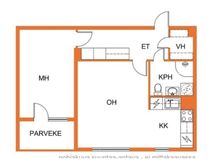 Kaksio: 2h, avokeittiö, kph, vh, lasitettu p