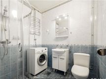 Suihku, Suihkuseinä, Pesukone, Pesukonevalmius, Peilikaappi, Allaskaappi, Rättipatteri, Laattalattia, Halogeenivalot, Laattaseinä, Lattialämmitys