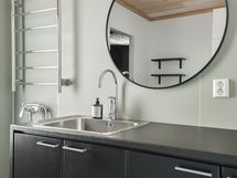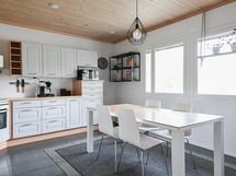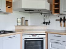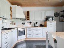 - Keittiön varusteet: Jääkaappi, erillinen pakastin, astianpesukone, erillisuuni, liesi ja liesituuletin. Liesi: Induktioliesi. Työtason materiaali: Laminaatti.