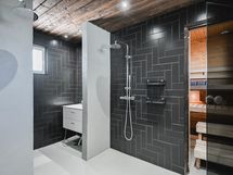 - Pesutilojen varusteet: Suihku (x 2), lattialämmitys ja wc-istuin. Erillisten WC:n lukumäärä: 2. Erillisen WC:n varusteet: WC-istuin, bidee-suihku, lattialämmitys, allaskaappi, lattiakaivo ja pesuallas.