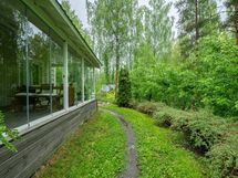 - - Tontti on rinnetontti, mutta rinteessä on lähes koko tontin levyinen tasanne, joten talo on rakennettu tasamaalle