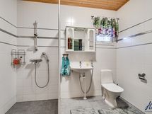 Pesutilojen kuvaus: Kokonaan laatoitettu ph/wc, peilikaapp, lattialämmitys. Erillisten WC:n lukumäärä: 2. Erillisen WC:n kuvaus: Erillinen wc on kokonaan laatoitettu, peilikaappi ja allaskaappi tasolla. Lattialämmitys.