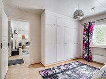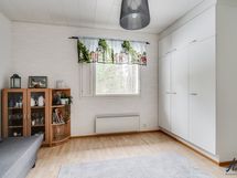 Makuuhuoneiden lattiapinnat on laminaattia ja seinäpinnat on tapetoitu.