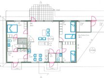 Pinta-alan peruste: Ei tarkistusmitattu. Pinta-ala voi siis olla edellä mainittua pienempi tai suurempi. Rakennuspiirustuksien mukaan asuinrakennuksen huoneistoala on n. 116,5 m2 ja kerrosala on n. 183,4 m2.
