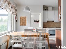 - Keittiön varusteet: Uuni, liesi (uusittu 2020), astianpesukone (uusittu 2021) ja jääkaappipakastin (uusittu 2017). Liesi: Keraaminen liesi. Työtason materiaali: Laminaatti.
