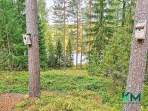 Puustoinen rinnetontti, tontti ei ulotu rantaan saakka.