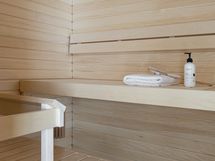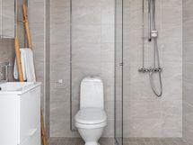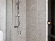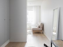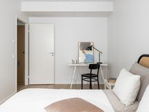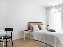 Tässä asunnossa makuuhuone on omassa rauhassaan, joten keittiöstä ja olohuoneesta kantautuvat äänet eivät niin helposti pääse häiritsemään. Makuuhuoneesta myös kulku asunnon parvekkeelle (toisessa kerroksessa asunnon terassille). Eteisessä on tilava kaapisto, jossa erikseen siivous- ja pyykkikomerot. Tässä asunnossa voit myös nauttia oman saunan löylyistä.