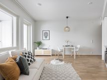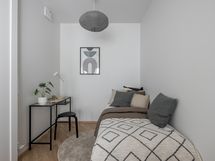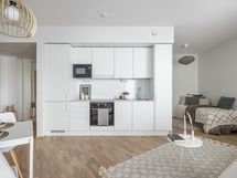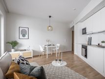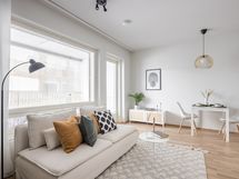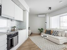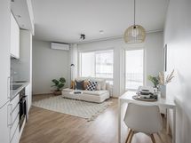 Kiva yksiö, jonka tilavan alkovin myötä olohuoneeseen mahtuu suurempikin kalustus. Ilta-auringon suuntaan avautuvalla parvekkeella on kiva viettää lämpimiä kesäpäiviä.