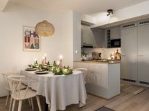 Tässä Vadelman viiden huoneen kodissa on kaikki kohdallaan. Kauniin harmaa avokeittiö, jossa on integroidut astianpesu- ja kylmälaitteet yhdistettynä tyylikkääseen keittotasoon sekä kalusteuuniin, täyttävät vaativammankin kokkailijan tarpeet. Keittiö yhdistyy valoisiin oleskelutiloihin, jotka jatkuvat tyylikkäälle, osittain lasitetulle ja katetulle terassille. Kodista löytyy kaksi kylpyhuonetta, joista toinen on saunallinen. Päämakuhuoneessa on tilava ja valoisa vaatehuone, säilytystilaa on kodin kaapistojen lisäksi pihan irtaimistovarastossa.