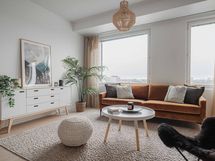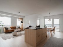 Huomaathan, että visualisoinnit ja mallisisustetun huoneiston kuvat eivät välttämättä ole tästä asunnosta. Kuvat ovat tästä kohteesta ja aina suuntaa antavia. Asunnon pohjakuvasta näet tämän huoneiston.