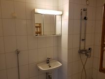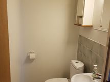Säilytystiloina vaatehuone ja kellarikomero. Pienenä erikoisuutena wc ja kylpyhuone on sijoitettu eri tiloihin.