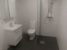 - Suihku, Suihkuseinä, Pesukonevalmius, Peilikaappi, Allaskaappi, Laattalattia, Laattaseinä
