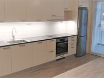 - Laminaattitasot, Astianpesukone, Integroidut koneet, Induktioliesi, Liesikupu, Jää-pakastinkaappi