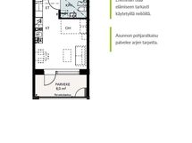 Vuonna 2022 valmistunut yhtiö ei vielä remontteja kaipaa, joten huoletonta asumista tässä kodissa riittää vuosiksi eteenpäin. Huoneiston parhaita puolia ovat normaalia korkeampi huonekorkeus ja asuinmukavuutta lisäävä lasitettu parveke. Lisäksi vesikiertoinen lattialämmitys on mukava jalalle ja helpottaa sisustamista kun ei ole pattereita.