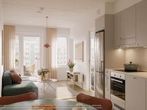 Asunnossa on laadukas kovapuulattia ja keittiön ja kylpyhuoneen laadukkaat laitteet ja kalusteet helpottavat arkea ja miellyttävät silmää. Sisustusarkkitehdin tarkkaan harkitut materiaalivalinnat varmistavat kotisi ajattoman ilmeen.