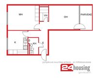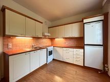 - Keittiön varusteet: Jääkaappi, uuni, liesi ja liesituuletin. Hyvänkokoinen keittiö, jossa on tilaa isollekin ruokapöydälle.