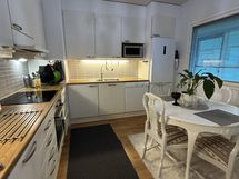 - Kaikki huoneiden pinnat maalattu 2022, keittiön ja kylpyhuoneen kaapit maalattu, lisäkaappeja asennettu, listat uusittu, väliseinä rakennettu, liukuovi vaihdettu oveksi, uudestaan listoitettu saunan lauteet hiottu uutta vastaavaksi.