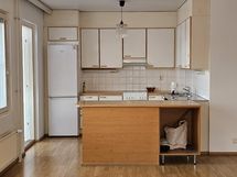 Asunto on erittäin valoisa ja avara, sekä pitää sisällään jääkaappipakastimen, astianpesukoneen, pyykinpesukoneelle paikan ja runsaasti kaappitilaa.