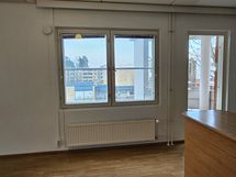 Asunto on kolmannessa kerroksessa ja ikkunat ovat kakkoon ja pohjoiseen, joten asunto ei ole kesälläkään kuuma.
