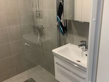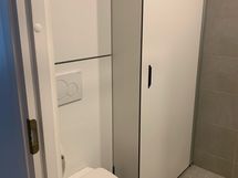 - Suihku, Suihkuseinä, Pesukone, Kuivausrumpu, Pesukonevalmius, Peilikaappi, Allaskaappi