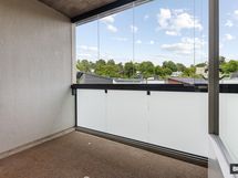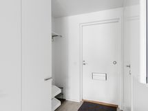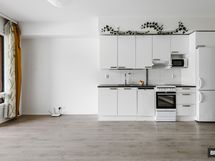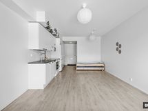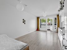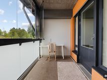 Avokeittiön reunustama huone tarjoaa hyvin tilaa sekä sängylle että olohuoneen ja ruokailutilan kalusteille. Eteisestä löytyvät lisäksi riittoisat kaappitilat. Moderni ja avara kylpyhuone on tarpeeksi tilava myös pesukoneelle. Kokonaisuuden kruunaa reilunkokoinen lasitettu parveke.