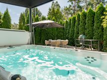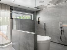Lisäksi kylpyhuone saunaosaston yhteydessä jossa myös kylpyamme. Erillisen WC:n kuvaus: Alakerrassa 2 erillistä wc:tä. Yläkerrassa molemmissa kylpyhuoneissa wc-istuin.