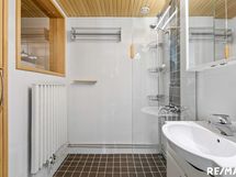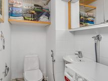 - Pesutilojen kuvaus: Kylpyhuone uusittu 2008-2009. Suihku, suihkuseinä, peilikaappi, allaskaappi, pyykinkuivausteline seinässä, valaisimet. Seinät ja lattia laatoitettu. Erillisten WC:n lukumäärä: 1. Erillisen WC:n kuvaus: Uusittu 2008-2009. Peilikaappi, allaskaappi, seinäkaappi, pesukoneliitäntä. Lattia ja seinät laatoitettu.
